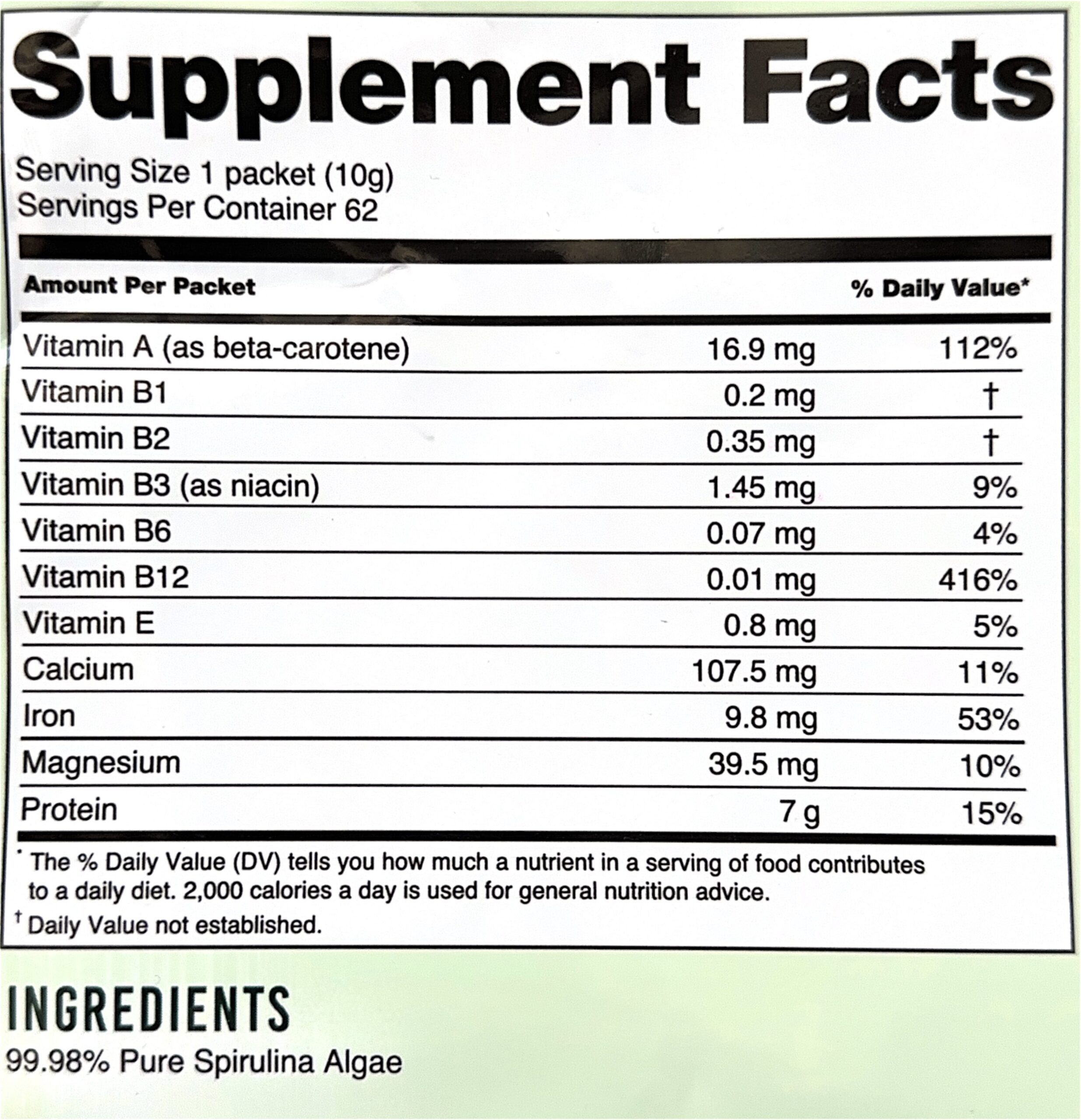 Ingredients: 100% Fresh Spirulina